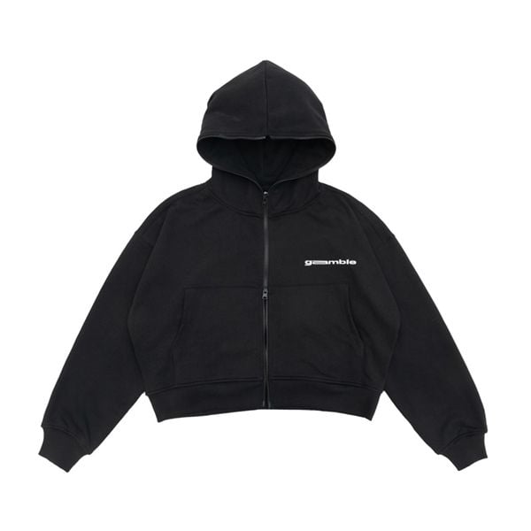 LOGO BOXY FULLZIP HOODIE / BLACK